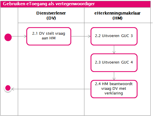 Deze use case is een uitbreiding op GUC1 Gebruiken eToegang als dienstafnemer en wordt hieronder in een activity diagram weergegeven.